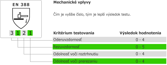 Označenie určuje, že odev dodržiava základné požiadavky na zdravie a bezpečnosť podľa nariadenia EÚ 89/686. Je však potrebné uviesť, že žiaden výrobok nezaručuje 100%-ú ochranu pred zraneniami a úrazmi, pri dodržiavaní pokynov výrobcu eliminuje riziko na minimálnu možnú hranicu, je potrebné bezpodmienečne dodržiavať príslušné bezpečnostné predpisy ochrany a zdravia pri práci.