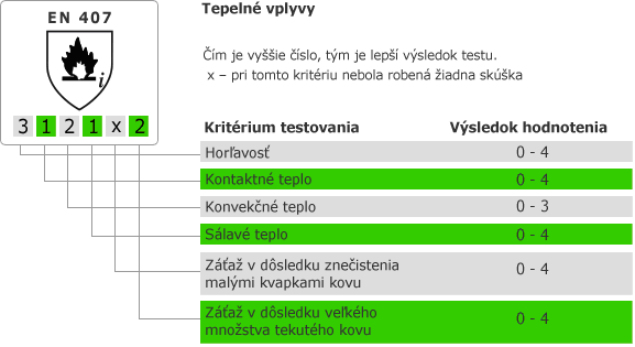 x: termoizolácia meraná so spodným prádlom typu B (na visačke)