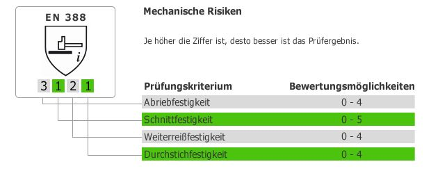 Auf dem Etikett ist angegeben, das das Kleidungsstück den grundelegeneden Gesundheits- und Sicherheitsanforderungen der EU-Verordnung 89/686 entspricht. Es ist jedoch zu beachten, dass kein Produkt einen 100% igen Schutz vor Verletzungen garantiert und um das Risiko so gering wie möglich hält, wenn die Anweisungen des Herstellers befolgt werden. Es ist wichtig, die einschlägigen Sicherheits- und Gesunheitsvorschriften einzuhalten.