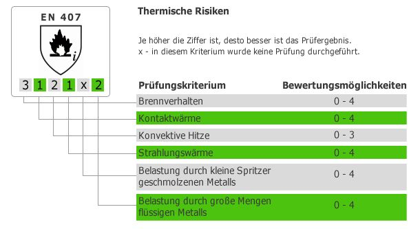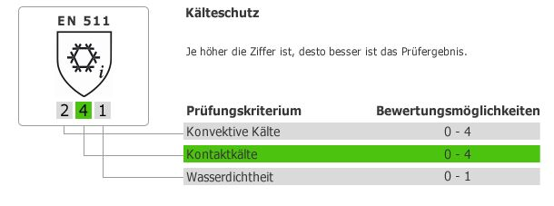 Diese Norm legt Anforderungen an die persönliche Schutzausrüstung bei Kaltarbeiten bei Temperatur unter -5°C fest. Die folgenden Parameter werden verwendet, um sie anzuzeigen: